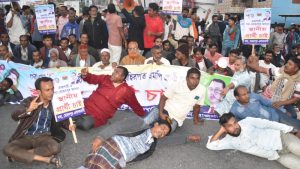 দলীয় কর্মীরা প্রায় এক ঘণ্টা ধরে মিছিল, স্লোগান ও অবস্থান কর্মসূচি পালন করেন। এরপর তারা সড়কের মাঝখানে শুয়ে বসে প্রতিবাদ জানান।